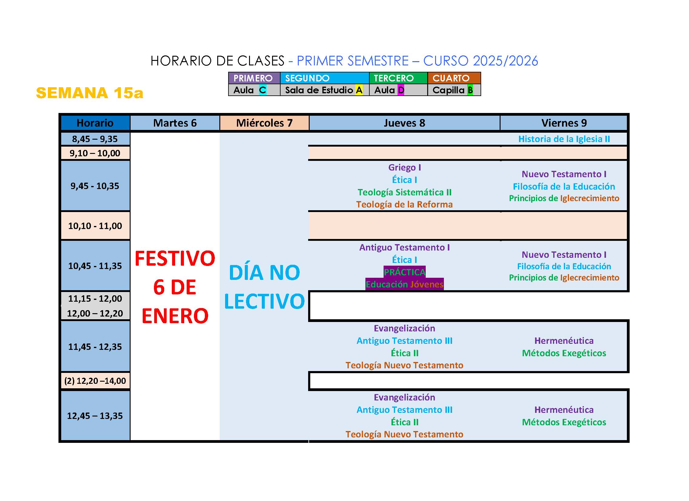 CALENDARIOS Y HORARIOS DE CLASES DEL CURSO 2025-2026